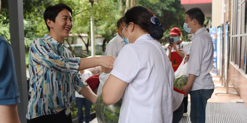 夏日炎炎,骄阳似火,入伏后的涪陵逐渐进入了高温模式。7月13日,党委书记黄大勇、校长杨燕滨、副校长杨双率队慰问暑期坚守一线的教职工和留校学生,给他们送去了清凉解暑的西瓜、矿泉水。