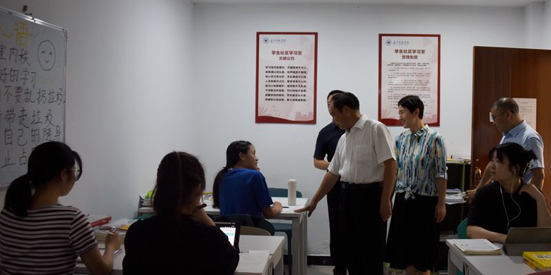 “学习、生活有没有问题?”“准备考哪所学校,复习得怎么样?”黄大勇、杨燕滨顶着烈日走进学生社区,关心留校学子们的学习生活情况,并鼓励备战考研、考公的同学们认真做好复习规划,叮嘱他们做好防暑,注意劳逸结合、高效率地学习。