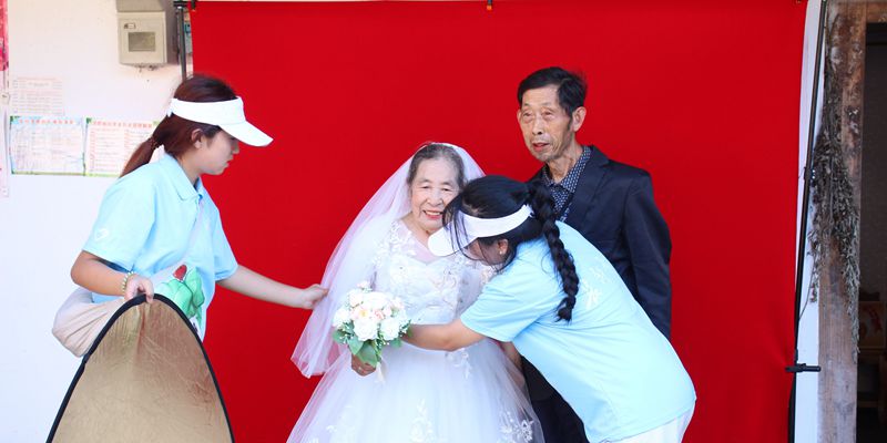“以前没条件拍婚纱照,感谢这些年轻人,让我们老了还能穿上婚纱拍婚纱照。”78岁的徐地芳奶奶感激地说道。长青青志愿者们在恒合乡鸿凤村、民族中心小学开展了“青春‘证’好·‘晚’美爱情”摄影活动,免费为当地居民拍摄了近300张照片。拍摄结束后,志愿者们用打印机将照片打印,赠送给拍摄的乡亲们。