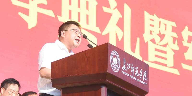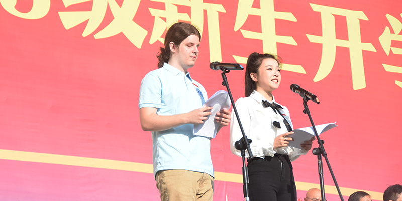 来自波兰卢布林天主教大学的交换留学生江志杰(中文名)、传媒学院新生李林恩作为新生代表发言。江志杰表示,他非常喜欢中国文化,将在长师努力学好汉语,加深对中国文化的理解,未来努力弘扬中国传统文化,让世界认识、了解中国。李林恩呼吁全体新生要怀“虎胆”立远志,脚踏实地求真知,不忘本来,开辟未来,昂首阔步走在中国梦的宏伟蓝图中。