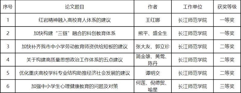 据悉,2023年全市教育咨政决策论文征集范围包括各区县教育部门、各级各类学校、市教委直属单位,其中高校组评出一等奖52篇、二等奖80篇、三等奖64篇,为解决制约教育高质量发展的机制体制障碍提供了有价值的决策建议。