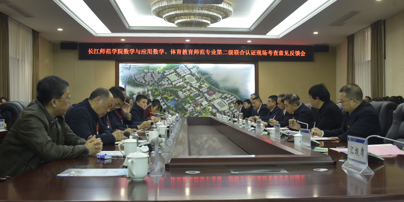 12月6日上午,数学与应用数学、体育教育师范专业第二级联合认证现场考察意见反馈会在我校致远楼525会议室召开,党委书记黄大勇,副校长李柳柏、向小川,各相关二级学院、职能部门负责人参加会议。
