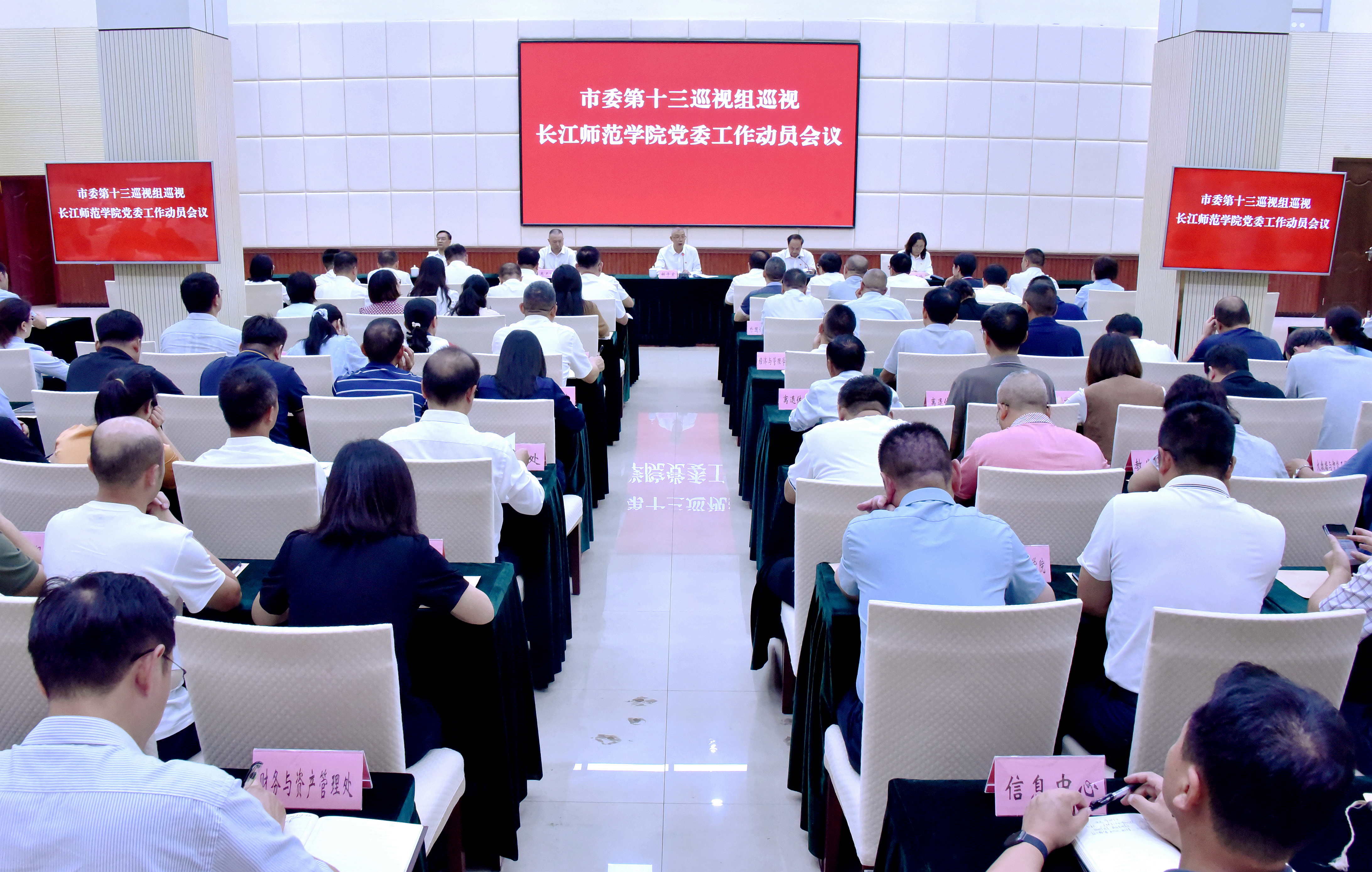 市委第十三巡视组副组长及有关成员,长江师范学院全体在家校领导出席会议;全校副处级以上干部、师生代表等列席会议。