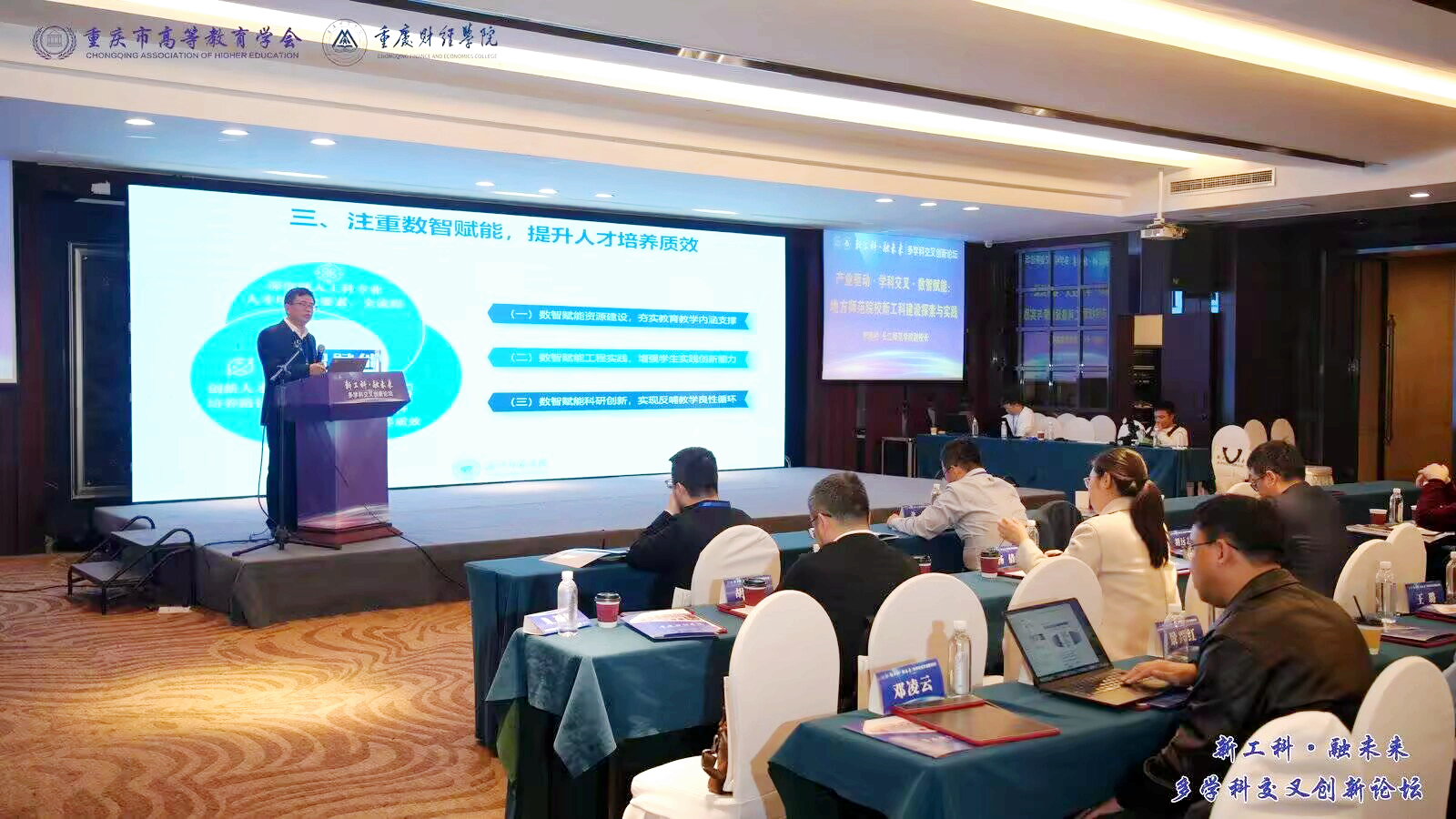11月8日,我校应邀参加由重庆市高等教育学会主办、重庆财经学院承办的“新工科・融未来:多学科交叉创新”论坛,副校长李柳柏以《产业驱动、学科交叉、数智赋能,地方师范院校新工科建设探索与实践》为主题作现场发言。