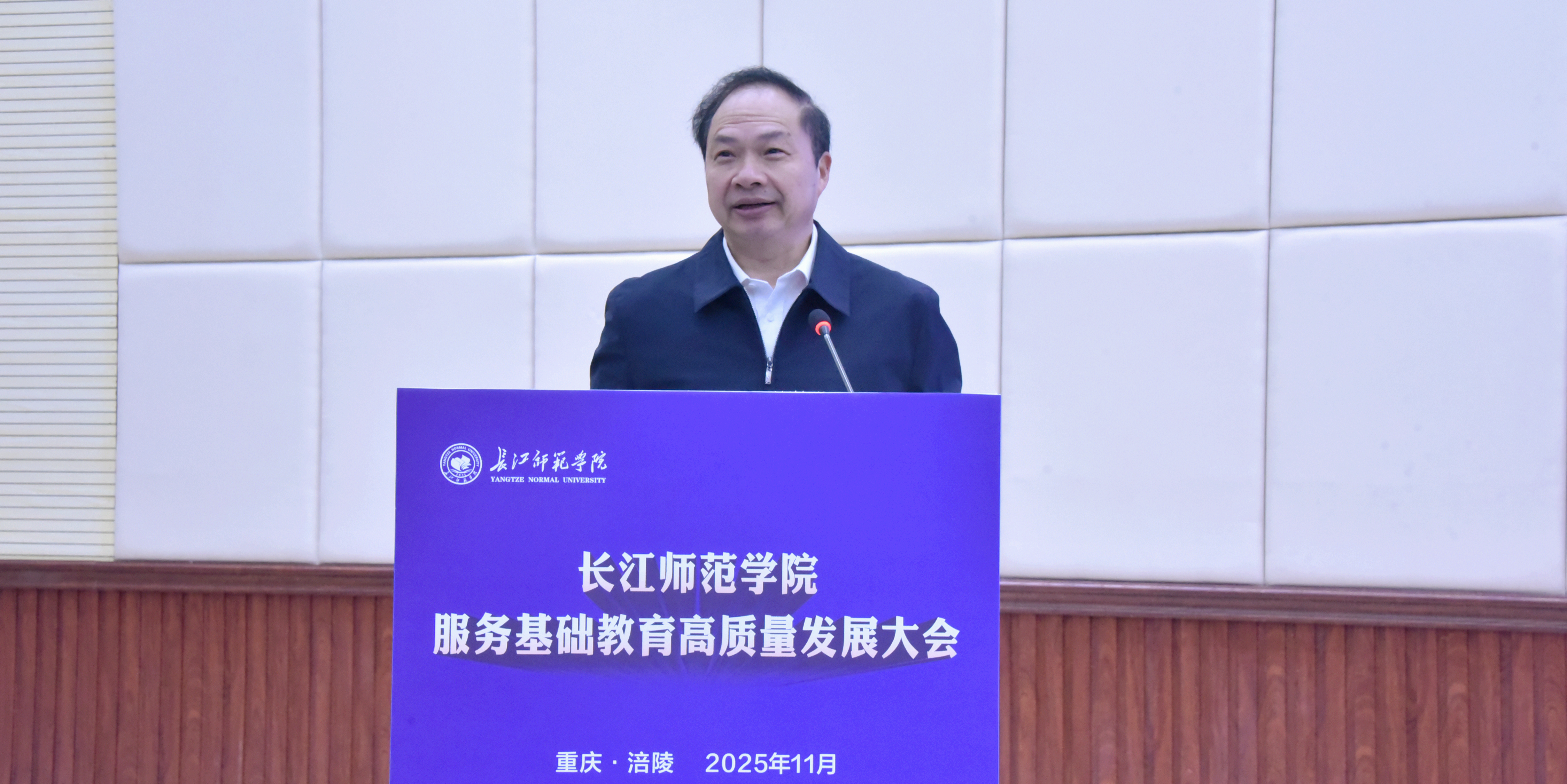 11月27日,学校召开服务基础教育高质量发展大会。会议以“数智时代县域基础教育变革与创新”为主题,旨在深入学习贯彻党的二十届四中全会、市委六届八次全会精神,汇聚师范院校、教师发展机构和中小学校育师强师合力,在教育强国、教育强市建设中彰显长师担当、作出长师贡献。重庆市教委相关处室负责人、涪陵区教委领导、渝东南东北区相关区县教师发展机构负责人、基地校党委书记校长代表,学校党委书记黄大勇、党委副书记向小川出席会议。副校长李柳柏主持开幕式。