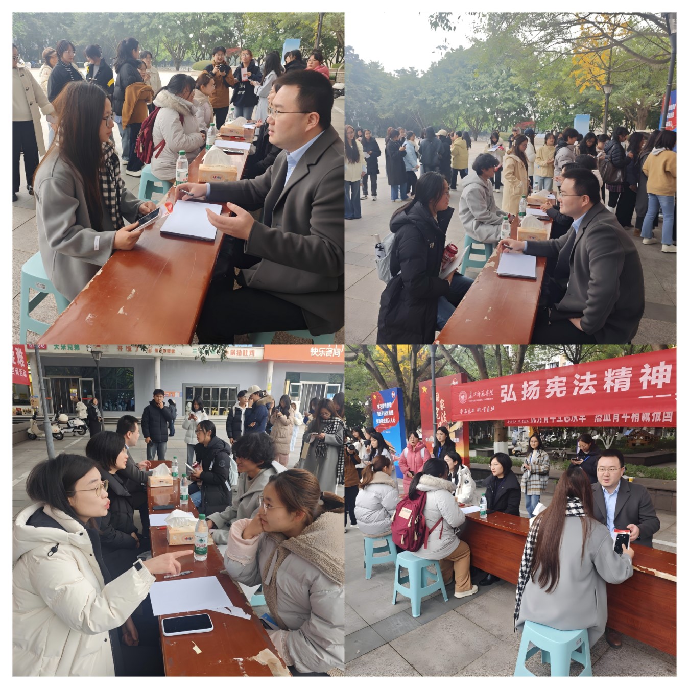 125日,时值第四个宪法宣传周,学校联合涪陵区司法局、重庆市律师协会开展弘扬宪法精神,解答法律疑难——公益法律服务工作站现场咨询活动, 深入学习贯彻党的二十大、二十届历次全会精神和全国、全市教育大会精神,着力加强校园宪法法治教育,培育知法、守法、用法的新时代青年。
