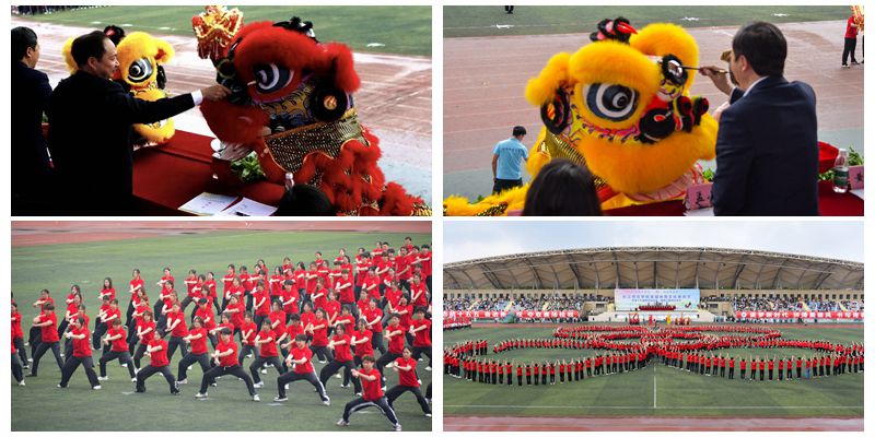方阵展演结束后,舞龙舞狮、醒狮点睛与点易拳表演精彩上演,将开幕式气氛推向高潮。祥龙翻腾、瑞狮欢跃,以传统技艺生动诠释中华优秀传统文化的深厚底蕴。学校领导为醒狮执笔点睛,寓意美好祝愿,现场洋溢喜庆祥和的节庆氛围。随后,近千名学子列阵演武,带来点易拳展演。这一与学校文脉渊源深厚的传统武学走出典籍、走向操场,在青春律动中焕发时代风采,成为学校传承弘扬中华优秀传统文化的生动注脚。